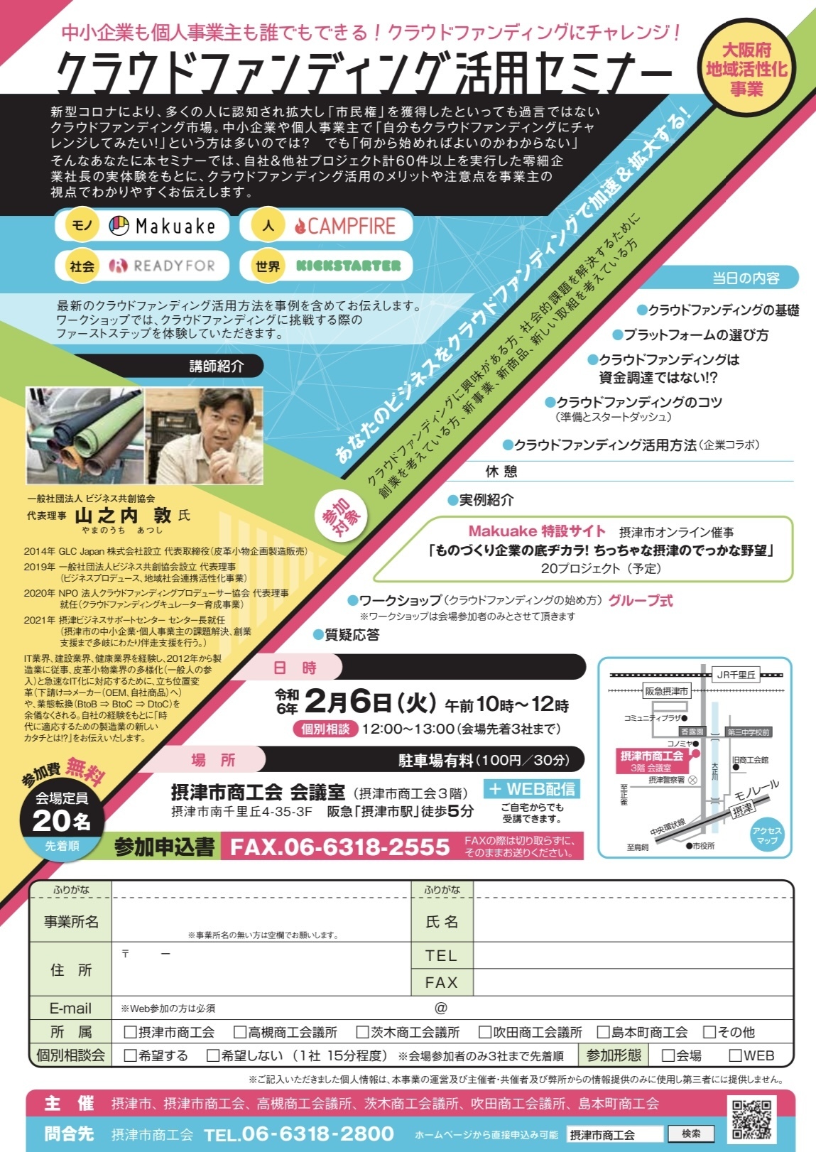 起業や経営に関する課題や悩みについて相談いただける伴走型のビジネス相談所です。摂津市内に事業所がある企業、摂津市民で起業をお考えの方にご利用いただけます。